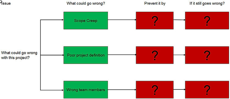 1. Write down the potential issue that might happen e.g. “What could go wrong with this project?”